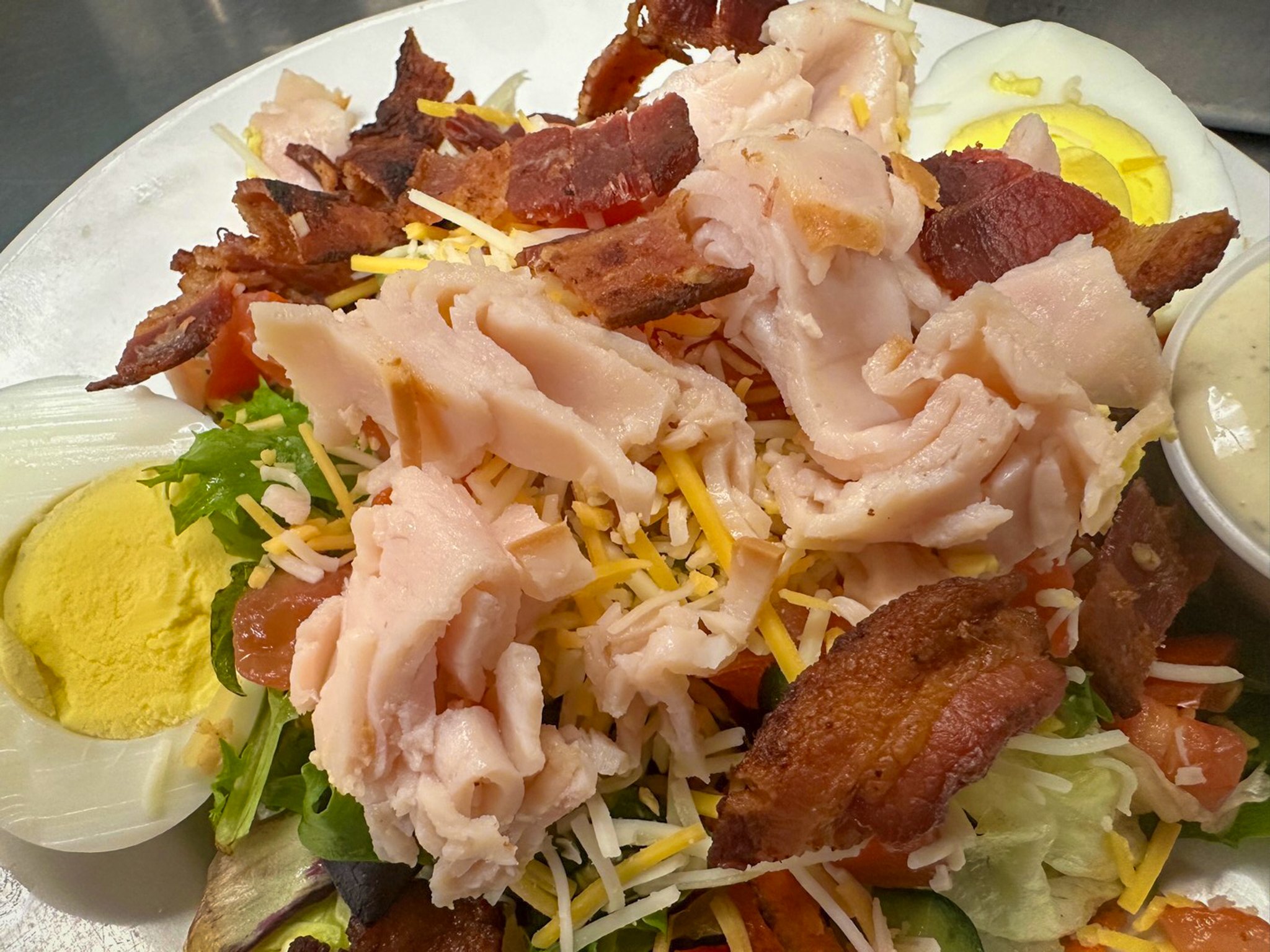 We have 9 delicious salad offerings, and your choice of 15 salad dressings served on the side. Check out our Chicken Caesar, Buffalo Chicken and Mandarin Chicken Salads, Cobb, Chef and Taco Salads for a start.