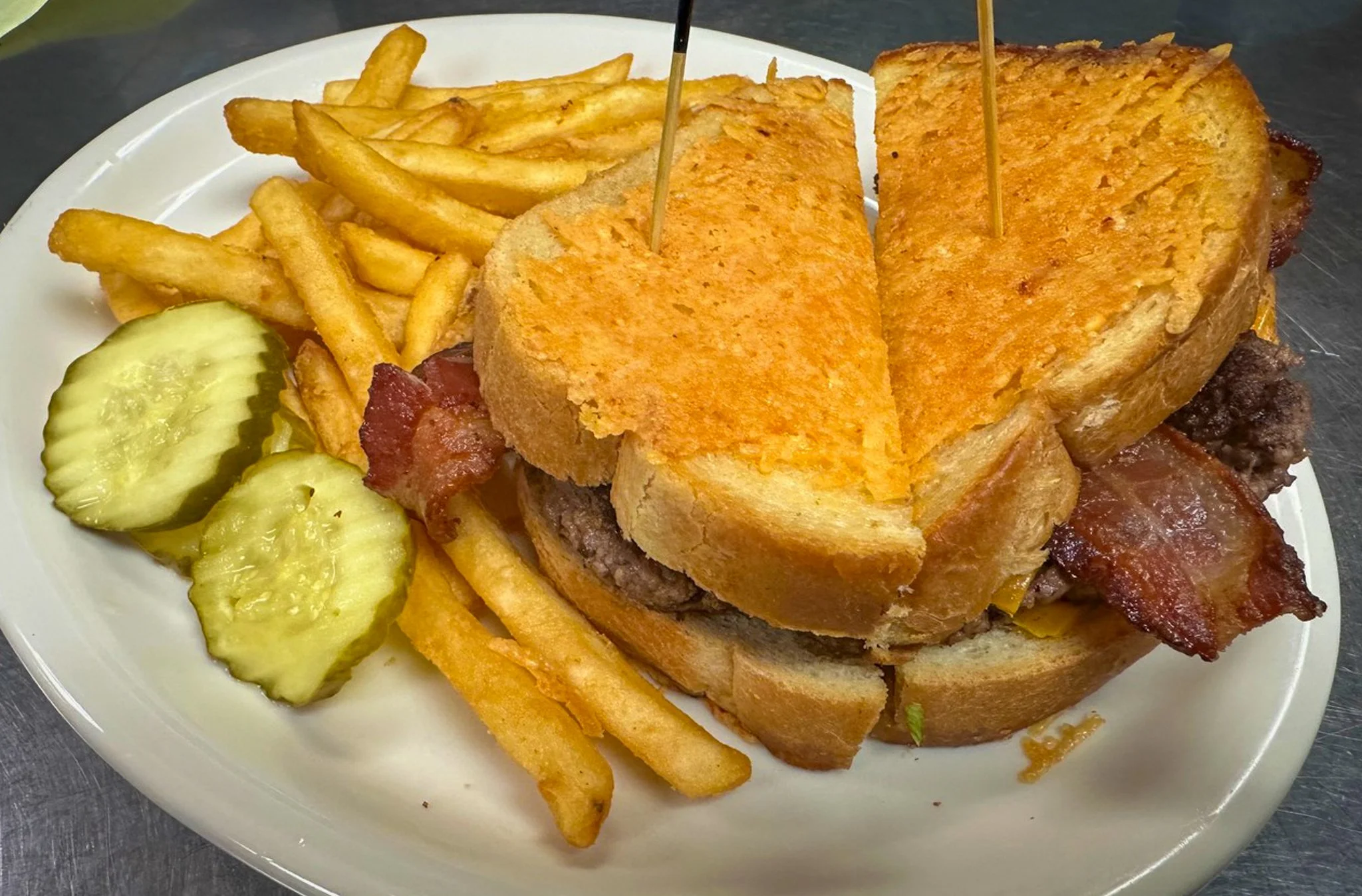 Served with French fries or one side, we feature six classic burger offerings: Classic Burger, Bacon Cheeseburger, Mushroom Swiss Burger, Western BBQ Burger, Breakfast Burger and Veggie Burger.
