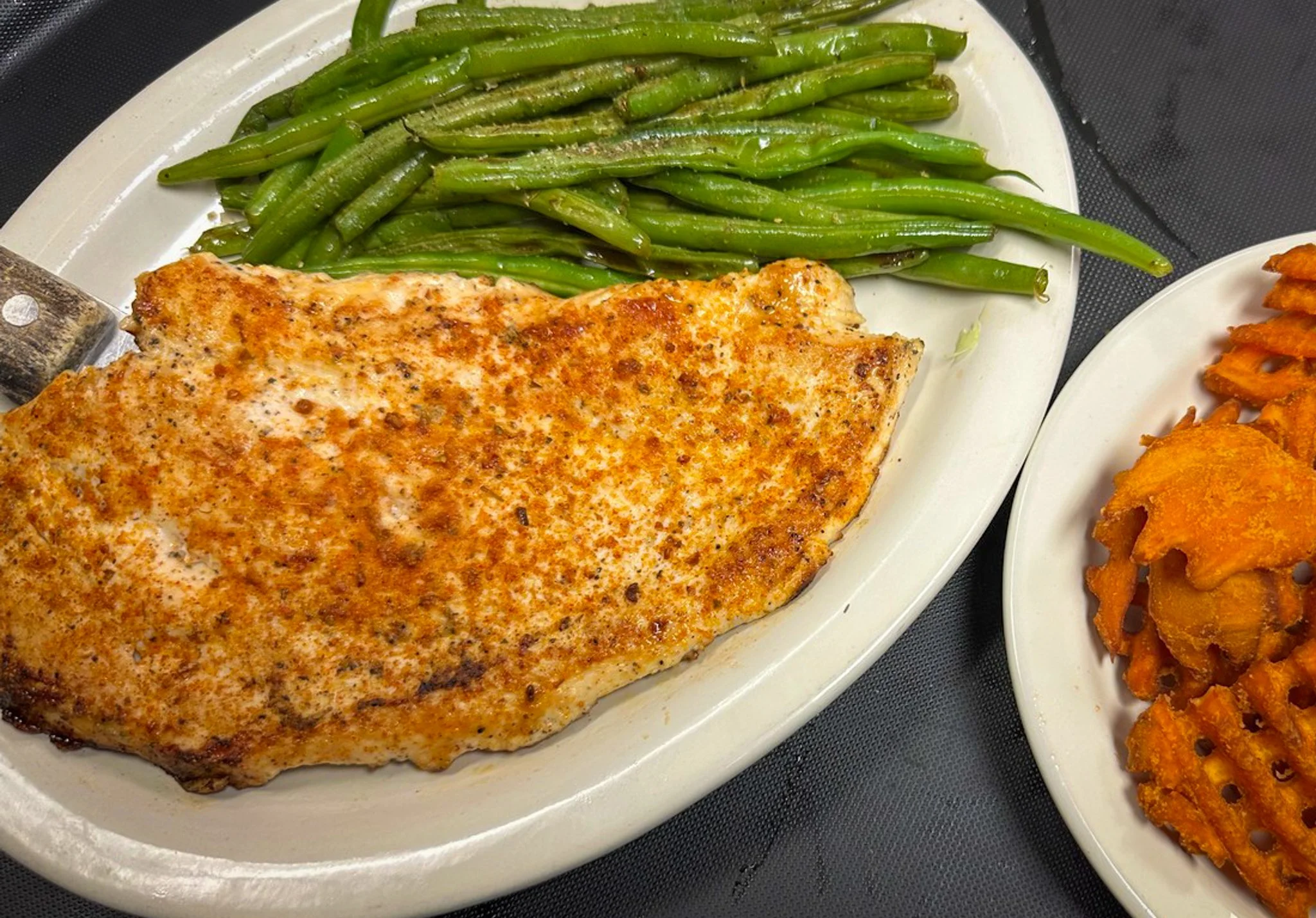There’s something for everyone on our Dinner Menu, each served with a cup of soup or house salad and one side, or your choice of two sides. Try our Chicken Fried Steak or Chicken, Pork Chops, Southern Fried or Grilled Catfish, Salmon Filet and more.